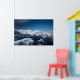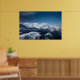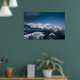 Clouds rolling above snowy mountains poster
