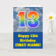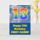 The front of this fun 13th birthday greeting card design features a cloudy blue sky depiction, along with the number "13" having a multicolored rainbow spectrum like gradient pattern. The front also features a birthday greeting message, including a customized recipient name. The inside features a custom birthday greeting message, or could perhaps be cleared and left blank if a message is to be written by hand instead. A customizable birthday card like this might be a fun way to send birthday wishes to somebody who is celebrating their thirteenth birthday. [~Z0000370]