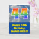 The front of this fun 44th birthday greeting card design features a depiction of a blue sky with clouds, along with the number "44" having a multicolored rainbow spectrum like gradient pattern. The front also features a birthday greeting message, including a custom recipient name. The inside features a custom birthday greeting message, or could perhaps be cleared and left blank if a message is to be written by hand instead. A birthday card like this might be a fun way to send birthday wishes to somebody who is celebrating their forty fourth birthday. [~Z0000370]