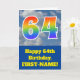Cloudy Blue Sky, Rainbow Pattern "64" Birthday # Card