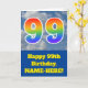Cloudy Blue Sky, Rainbow Pattern "99" Birthday # Card