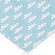 Blue polka dots on light blue table runner decorated with bubbly clouds.