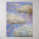 This piece is a dreamy acrylic painting on canvas that captures the quiet beauty of a sky filled with soft, voluminous clouds drifting across a violet-blue background. The clouds, rendered in gentle layers of grey and white, float effortlessly through the composition, creating a sense of calm and depth.