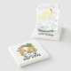 The coasters are gorgeous, a quality feel and heavy weight. They look like a precious archeological find. A rustic stone juxtaposed with a modern floral black and white print. I like the way the print goes slightly imperfect on the cut stone edges giving them a kind-of natural beauty.
