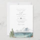 This wedding invitation features a bohemian watercolor mountain lake painting and elegant calligraphy font. This is the perfect invitation for any season.