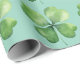 Clover and shamrocks a plenty to spread the good luck around, all on a light seafoam green background.