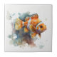 Brighten up your living space with this delightful ceramic tile featuring a beautifully painted clown fish in a watercolor style on a crisp white background. This charming design adds a touch of aquatic whimsy to any room, making it an ideal addition to your home décor.