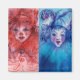 Colourful ,whimsical ,vibrant,artistic clown portraits ,watercolor paintings in,purple,fuchsia,pink,red,yellow,blue,green colours inspired from Carnival of Venice.