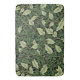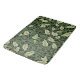 A foliage print with a light almost olive green or sage leaves interwoven into darker greens. A shade of hunter green or a dark forest green creates the large majority of the leaves. These on a background of black.