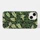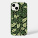 A foliage print with a light almost olive green or sage leaves interwoven into darker greens. A shade of hunter green or a dark forest green creates the large majority of the leaves. These on a background of black.