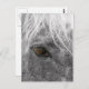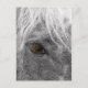 A close-up photograph of the face of a beautiful Clydesdale horse with liquid brown eyes and a snowy white mane. Postcards are perfect for making miniature framed pictures to hang on your wall and a cheap but chic alternative to expensive poster prints.