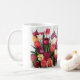 A bright and beautiful mug for your coffee or tea; filled with tulips to add to your morning cheer. Red, pink, yellow and purple tulips adorn this mug by artist Claire M Carlson.