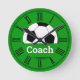 Wall Clock: Elegant watch with football ball on a green field and text "Coach" or personalised name - football, soccer fashion gifts, fathers day / sports fan