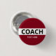 Coach text on burgundy Button.