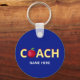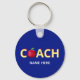 Coach text with apple in blue Keychain. Text can be personalised by adding name, subject or school.