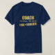Coach the man the myth the legend in mixed sans and serif font in a golden yellow gradient to simulate metal and an accent star.