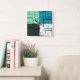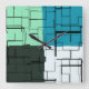Coal White Teal Green Aqua Blue Modern Pattern Square Wall Clock