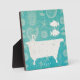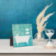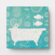 A cute bath on blue linen design featuring seashells, coral and seahorses.