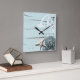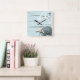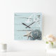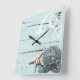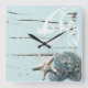 Coastal barn wood aqua blue starfish seashells square wall clock
