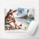 Coastal Beach Girl & Lighthouse Mouse Pad