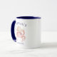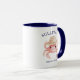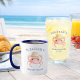 Start your day with a touch of seaside charm using this personalized coastal coffee mug, featuring an adorable watercolor pink crab wearing a straw sunhat. Designed in a soft, airy palette of blush pinks and sandy neutrals, paired with classic navy blue typography and a coordinating navy interior and handle, this mug captures the relaxed elegance of beach house living. Additional rim and handle colors available.