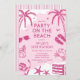 Coastal Beach Pink Doodle Birthday Party Invitation