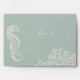 Seaside ocean on the beach sage green and tan wedding invitation return address personalized envelopes featuring hand drawn starfish and ocean corals, and a chic retro handwritten calligraphy script. +++++++ All colors are editable. +++++++++ Suitable for casual trendy beach coastal summer destination weddings.