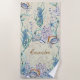 This personalised ocean sea life beach towel features an underwater coral reef design with watercolor coral, seaweed, shells, starfish, crab and seahorse.