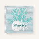 This personalised rustic beach driftwood notebook with sand dollar and starfish and aqua glitter coral branch, is great for taking to the beach for journalling, taking notes, etc.