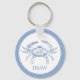 This cute keychain features a classic coastal crab in blue and white with a monogram that you can personalise with your choice of initials on the front and contact information on the back..