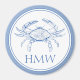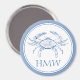 This cute magnet features a classic coastal crab in blue and white with a monogram that you can personalise with your choice of initials.