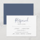 Designed to coordinate with my coastal colours wedding stationery set, this white and navy blue rsvp card features your reply information in a modern hand lettered script typography in a dark blue. Space is provided for guests to add their rsvp information and simple meal choice options. The card reverses to a complimentary blue colour. Easily change the colour to suite your wedding theme by clicking on the "Edit using Design Tool" in the "Personalise this template" section. To see matching wedding stationery visit www.zazzle.com/dotellabelle