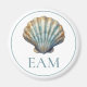 This beautiful monogrammed round magnet features a coastal scallop seashell in soft watercolor shades of blues and tans. Personalise the monogram with your choice of initials. Fun for personalised gift bags and party favours.