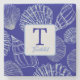 Coastal Blue Seashell Monogram Name Stone Coaster