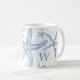 This coastal inspired coffee mug features blue starfish with a map overlay in the background and your monogrammed Initial on either side for you to personalise. Designed by world renowned artist ©Tim Coffey.