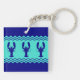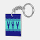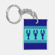 Coastal Blue Turquoise Stripe Lobster Pattern Key Ring