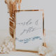 Our coastal chic design for summer weddings features a school of blue watercolor fish. "Cards and gifts" appears in elegant navy blue lettering. Designed to match our Coastal Blue Fish wedding collection. Available professionally printed or as a digital download for local printing.