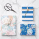 Coastal Blue Watercolor Seashell & Sripe Pattern Wrapping Paper Sheet