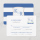 A smart navy blue and white watercolor coastal-inspired wedding crest RSVP and meal choice insert card design.