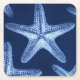 coastal chic beach rustic nautical blue starfish square paper coaster