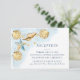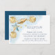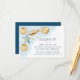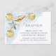 Romantic dusty blue and gold watercolor summer sun and sea beachin hand-painted wedding collection. The design features seashells, starfish, and coral reef in complimenting shades of blue, gold, and off white with a splash of blue for a water effect. Your details in navy blue modern lettering are framed by the nautical watercolor garland border of elegant sea coral, shells and starfish.