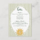 This whimsical coastal wedding details enclosure card features a vintage sun motif, lace border, palm tree, and stylish sage green stripe background. Perfect for a beach or California destination wedding. Created by Simply Farmhouse Press.