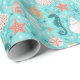 Ocean-themed Christmas wrapping paper with magical and whimsical underwater decorations like seahorses, shells, dolphins, and starfish. Bring a splash of enchantment under the tree this Christmas! Original artwork by Marketa Stengl.