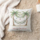 This fun coastal holiday inspired Christmas holiday throw pillow features palm trees decorated with ornaments and a hammock on each side. Great for holiday party decorations and Christmas home decor.