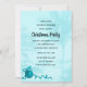 Tropical Christmas party invitation with blue palm trees design. Light blue with black text with plenty of lines to include "hosted by" names and additional party info at the bottom (such as a gift exchange). A single aqua blue Christmas tree ornament with ribbon decorates the bottom. Reverse is darker blue colour with a similar palm tree image. Use for New Year's Eve if you choose.