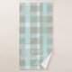Capture the serene beauty of the coast with this charming tartan pattern in soothing shades of teal, white, and beige. The soft colour palette adds a fun and beachy feeling to this bath towel design, perfect for bringing a touch of coastal elegance to your holiday decor. Personalise the design with your own text using the supplied template. Whether you’re creating unique home decor, or personalised gifts, this versatile pattern offers a delightful blend of classic tartan and coastal charm. Search ID1009 'Coastal' to see other products and patterns in this colour scheme.