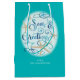 Personalised coastal, beach or tropical Christmas gift bag with SEAS & GREETINGS in elegant calligraphy script in turquoise and blue watercolor accented with starfish and personalised with your name or other custom text in your choice of background colour (shown in turquoise). ASSISTANCE: For help with design modification or personalisation, colour change, resizing, transferring the design to another product or if you would like coordinating items, contact the designer BEFORE ORDERING via the Zazzle Chat MESSAGE tab or email makeitaboutyoustore@gmail.com.