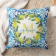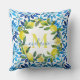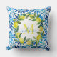 Coastal Citrus & Blue Tiles Custom Name Monogram Cushion