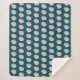 This blanket features a pattern of yellow clam shells on a dark blue background. Great for your beach house or bringing some fresh sea air into your home.
