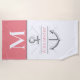 Coastal Coral Grey White Anchor Nautical Monogram Beach Towel